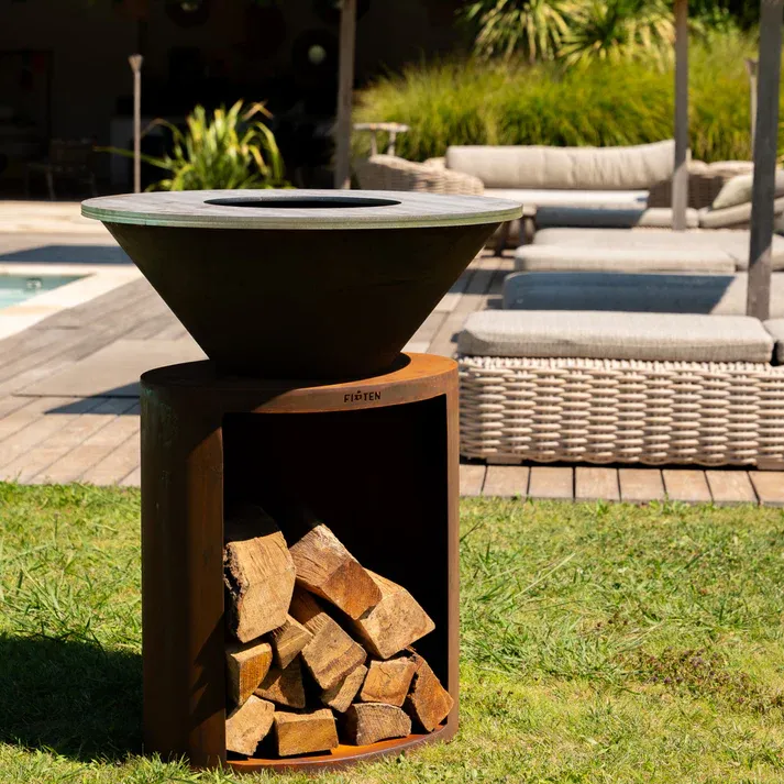Découvrez le brasero plancha Ellipse 80 de Firten, un incontournable pour tous les amateurs de cuisine en plein air, été comme hiver. Conçu et fabriqué en France avec un savoir-faire artisanal, ce modèle en acier corten allie robustesse et esthétique contemporaine.