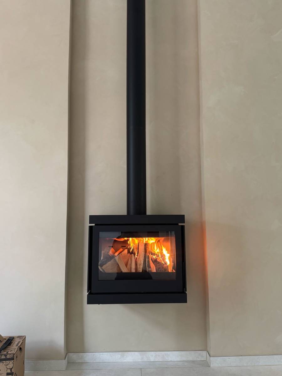 Installation d’un poêle à bois mural Barbas — Élégance et savoir-faire signés Garosi Énergie